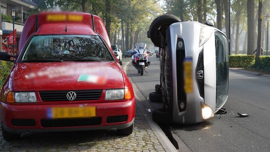 Auto kantelt op wegdek in Zuidlaren na botsing met pizzakoerier