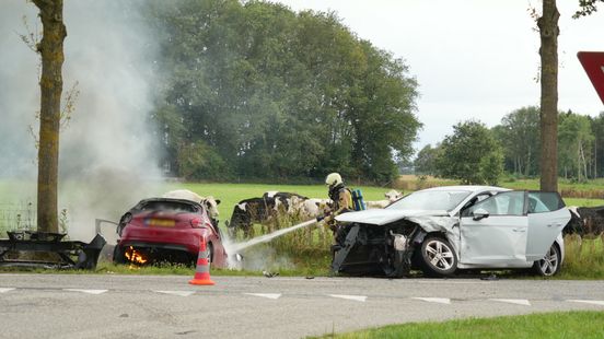Twee automobilisten kwamen met elkaar in botsing, waarna een van de auto’s in brand vloog.Read More