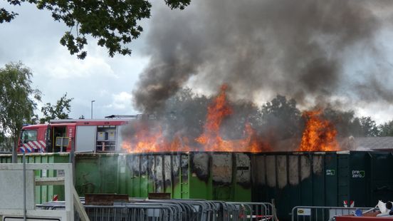 Containers milieustraat Midden-Drenthe vatten vlam