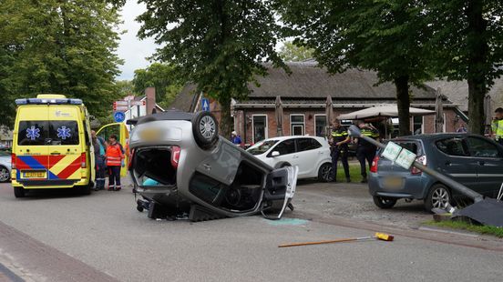 Auto op de kop in Norg, gewonde naar ziekenhuis