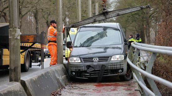 De bestelbus kwam klem te zitten tussen de reling en de betonnen rijbaanafscheiding.Read More