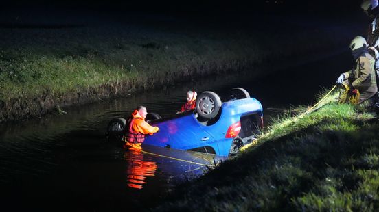 Auto op de kop in sloot langs snelweg bij Meppel